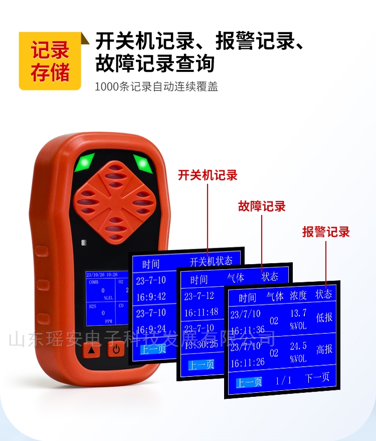 5.记录存储 开关机记录、报警记录和故障记录查询功能,最多可存储1000条记录