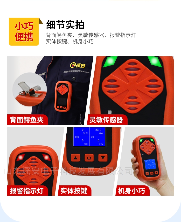 当检测到有害气体浓度超过预设阈值时,报警仪会立即启动多重报警系统,包括声光报警、高低报报警以及故障报警,确保工作人员能够及时采取应对措施。同时,2400mAh大容量电池保证了报警仪的长时间待机,连续使用可达10小时,满足了长时间作业的需求。