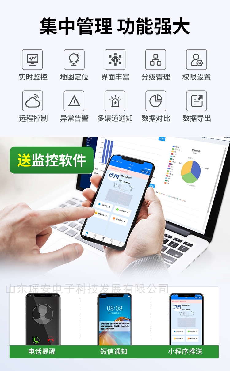 11、智能化操控:集中管理,功能强大,赠送后台管理软件,手机app+电脑端实时监控,支持实时监控、地图定位、界面丰富、分级管理、权限设置、远程控制、异常告警、多渠道通知、数据对比、数据导出