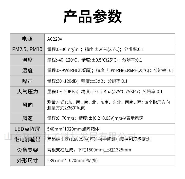 1、功能强大:支持PM2.5+PM10+噪声+温度+湿度+风速+风向+风力+大气压力+TSP,10项监测
