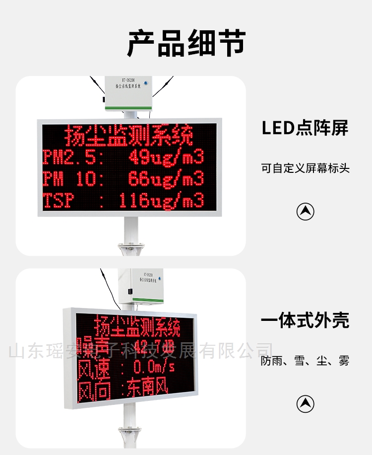 5、防护能力出众:扬尘监测系统HT-DS200系列LED防水点阵屏,无惧户外恶劣环境
