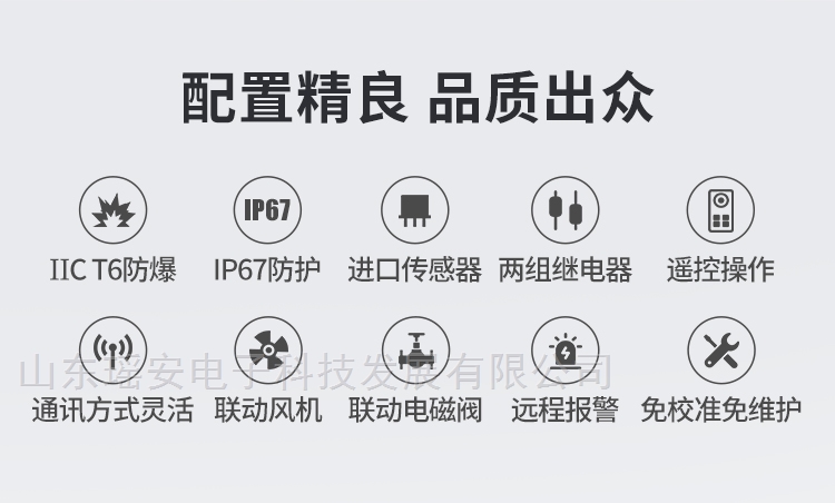 9、智能联动:物联网智能云端,实时预警监测,可搭配电磁阀、风机、喷淋等外接设备,超标自动联动