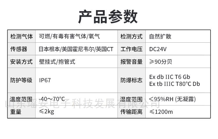 温度范围:可燃: -40°C~70°C;有毒:-20°C~55°C