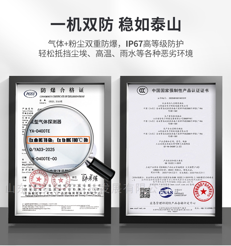 6、双环境防爆:符合气体+粉尘防爆双标准,IP66高等级防护,防止粉尘进入,雨水或短时间浸水不受影响