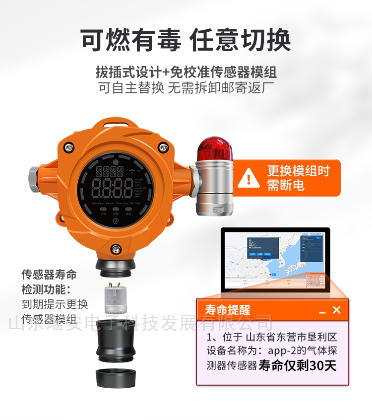 4、寿命自动检测:传感器寿命自动检测,到期提示更换